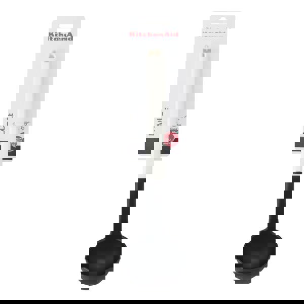Elevate your everyday cooking with the KitchenAid Ladle, a durable and stylish utensil designed to master a variety of cooking tasks with ease. The improved ergonomic design handle is perfectly weighted for optimal comfort, balance, and control, giving it a premium feel in your hand. The durable handle also includes a debossed logo and a handy hanging loop, perfect for showcasing your kitchen utensils.