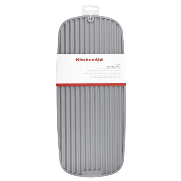 Air dry washing up with ease with the KitchenAid Slim Drying Mat. This space-saving mat fits perfectly next to the sink; ideal for when handwashing glasses, cutlery, dinnerware and pans. Not only does it save space, but it also ensures a tidier sink area without excessive pools of water.