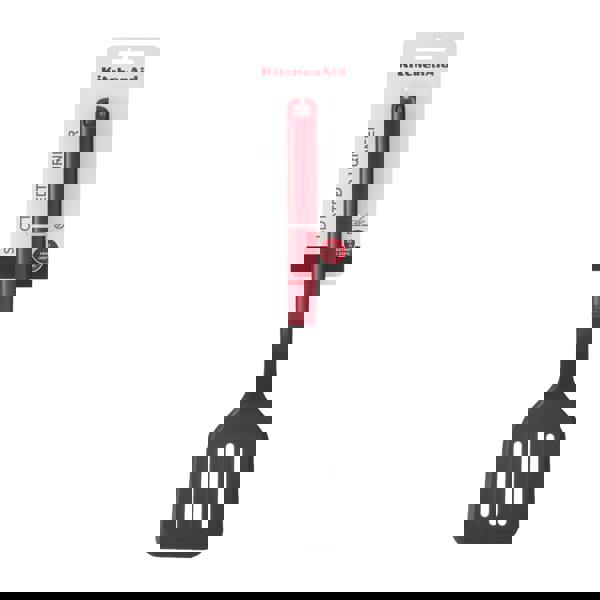 Elevate your everyday cooking with the KitchenAid Slotted Turner, a durable and stylish utensil designed to master a variety of cooking tasks with ease. The improved ergonomic design handle is perfectly weighted for optimal comfort, balance, and control, giving it a premium feel in your hand. The durable handle also includes a debossed logo and a handy hanging loop, perfect for showcasing your kitchen utensils.