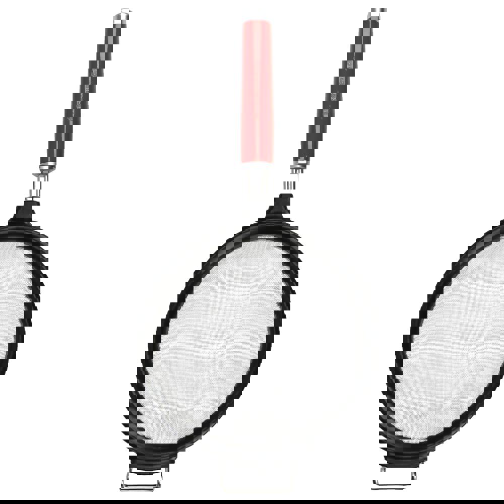 Strain vegetables, noodles and other foods with this versatile KitchenAid Mesh sieve. The stainless steel basket allows liquids to quickly drain out, and the lip ensures the strainer stays in place on a bowl or cup while in use. The handle is well-balanced and ergonomically designed for comfort and smooth operation during use. The glossy handle features a debossed logo, as well as a chrome-plated bolster. It's dishwasher-safe for easy cleanup.