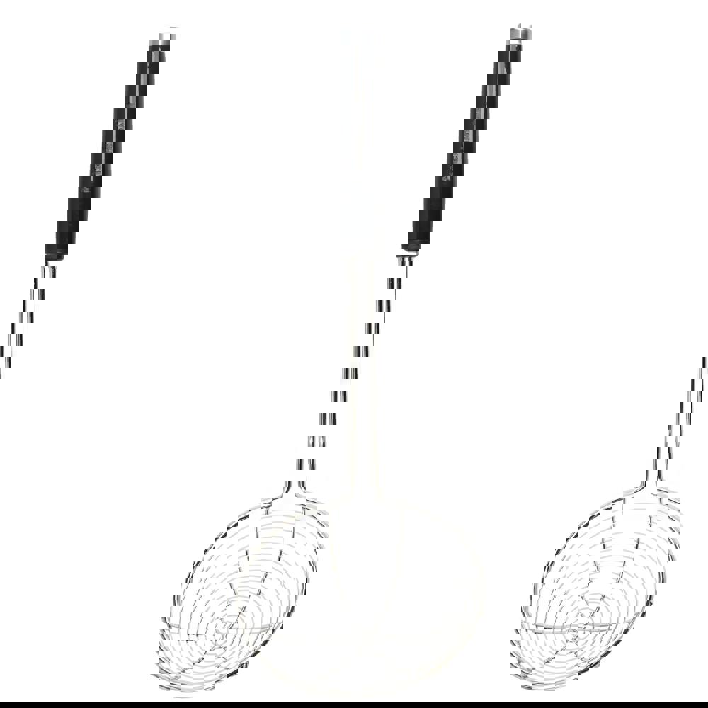 This versatile KitchenAid Skimmer scoops wontons and dumplings with ease. The extra-wide stainless steel basket allows liquids to quickly drain out, making it a great tool for stir-frying or for using with a wok. The strainer's head is made of strong, rust-resistant stainless steel. The glossy handle features a debossed logo, as well as a satin chrome-plated bolster and a hanging loop. It's dishwasher-safe for easy cleanup.