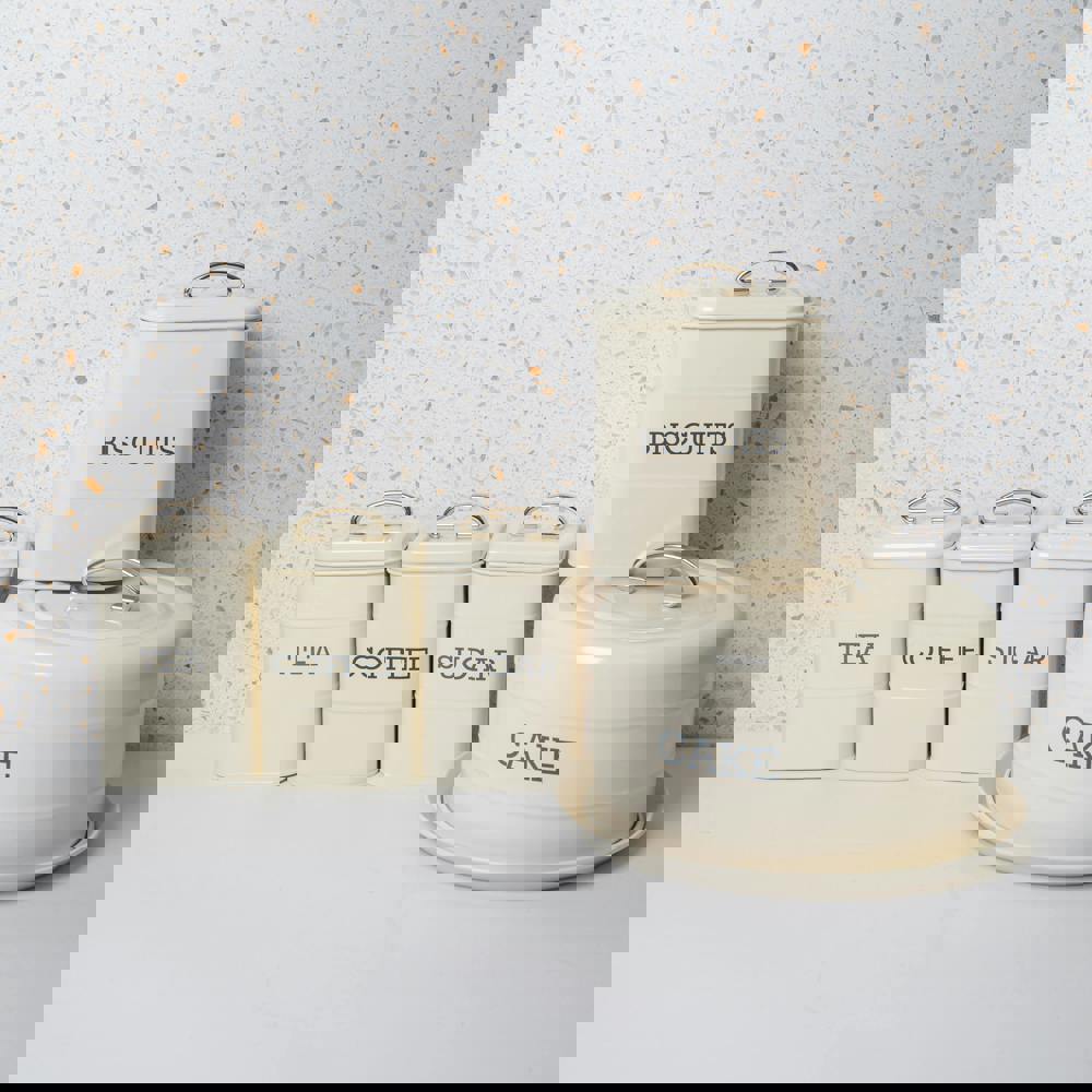Store tea, coffee and sugar, as well as biscuits and cake in the different tins and canisters, clearly labelled so you can easily find what you are looking for. The air-tight lids lock in freshness, while a sturdy handle makes them easy to open.