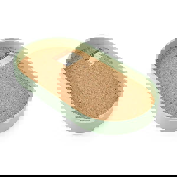 Crafted with a sustainable cork veneer base, this tray showcases a natural charm. Its multipurpose design allows it to effortlessly transform into a practical display for oil and vinegar bottles or a container for salt and pepper shakers in the kitchen. The wooden sides, adorned in a soothing green hue, add a pop of colour to any setting, complementing any décor.