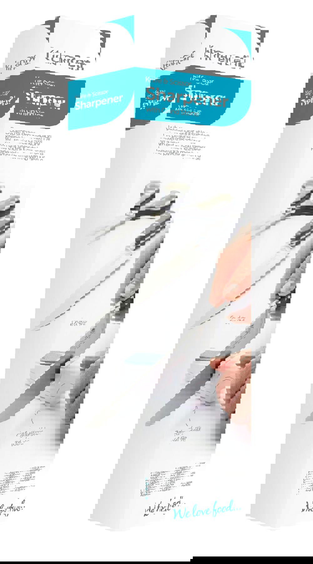 This handy sharpening tool features two blade sharpeners - a double-wheeled slot for knives and a single-wheeled slot for scissors. Don't worry if you're new to knife sharpening – they're both really easy to use. All you have to do is slot your blade into the sharpener, then repeatedly draw it towards you until sharp.