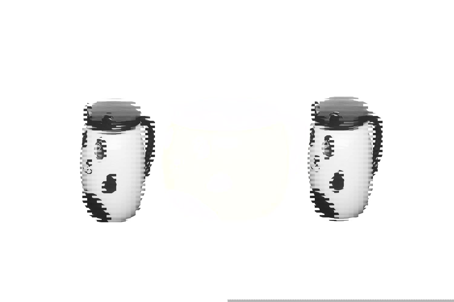 This wide-brimmed ceramic mug looks just like a cute and cuddly panda bear. Decorated with a black-and-white, spotted, smiling face and a little round belly, this little panda is as cute as can be. It even comes with a lid to keep your drink hot, which is finished with two tiny black ears.