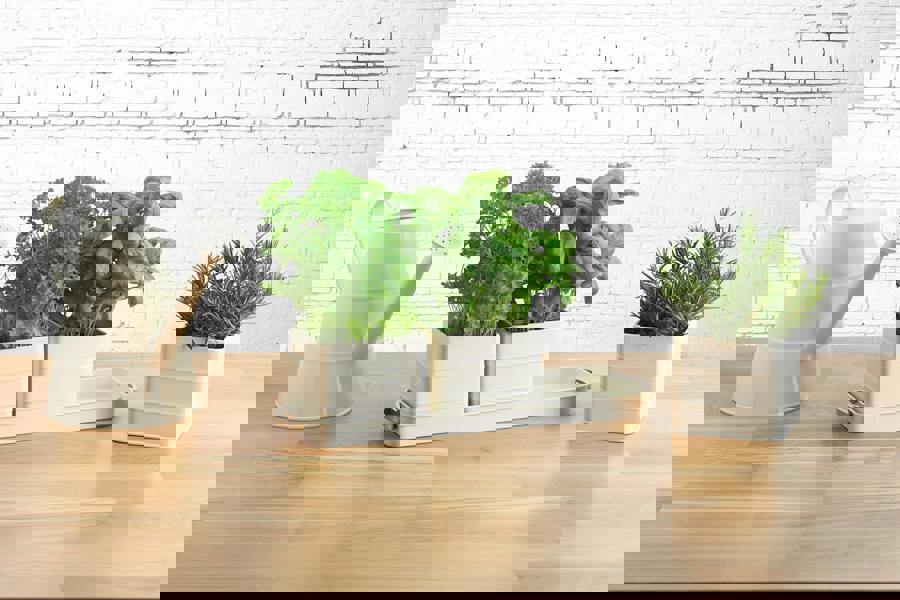 The set features three individual square herb planters, which slot neatly into a rectangular water tray. At 40 x 12 x 10. 5 cm (15½” x 4½” x 4”), it fits perfectly on a windowsill. This means you can grow all kinds of yummy herbs – such as basil, dill, oregano and parsley – and they’ll be close at hand to add some fresh flavour to a recipe.