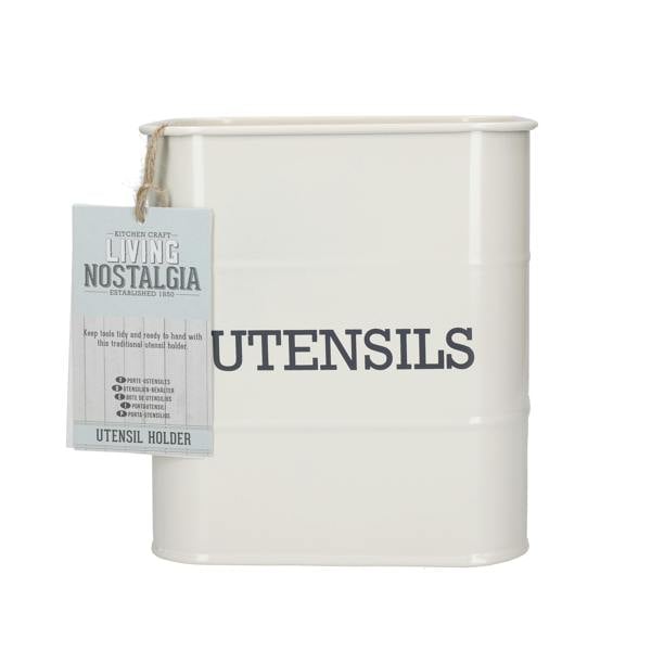 Essential for your kitchen, the antique cream utensil holder from Living Nostalgia sits perfectly in our beautifully quaint Living Nostalgia collection, bringing an added vintage charm to your kitchen. Keep your kitchen tools tidy and ready to hand, with the tin perfectly proportioned for a variety of both short and long handled utensils.
