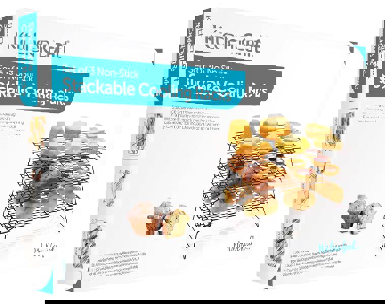 You need this stackable cooling rack. It features three generously sized tiers, which you place on top of each other, saving you acres of space on your counter top.