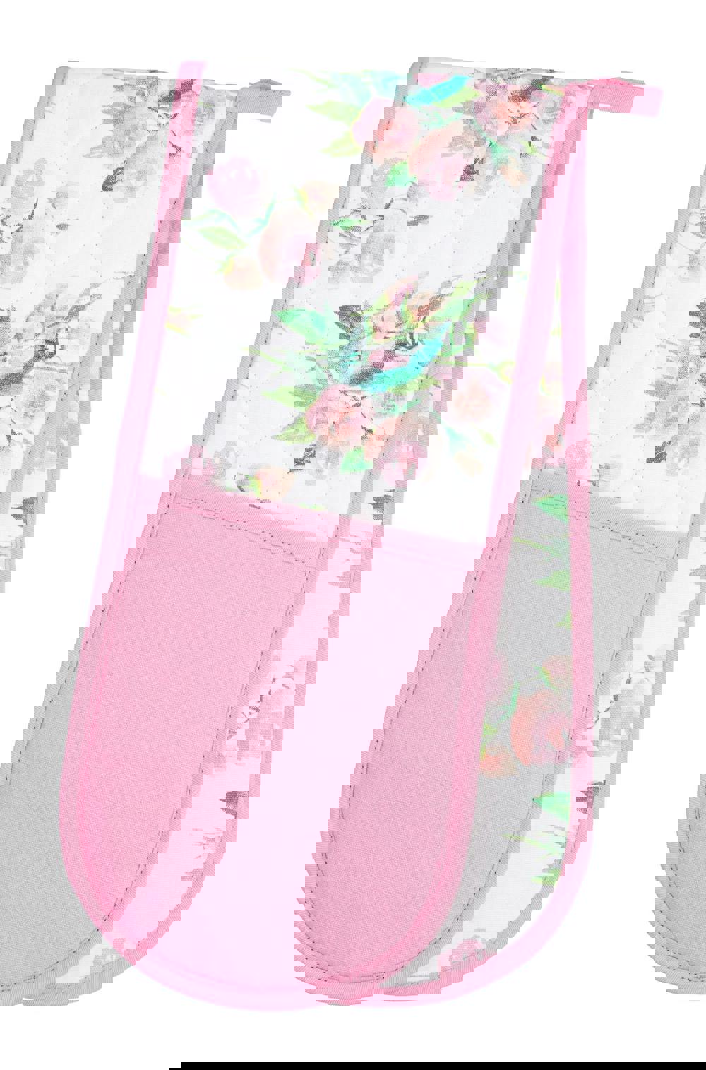 They feature a durable cotton outer with a thick polyester wadding, which act as an effective barrier against heat. The mitts are set wide apart to provide maximum freedom and comfort when handling hot trays and dishes.