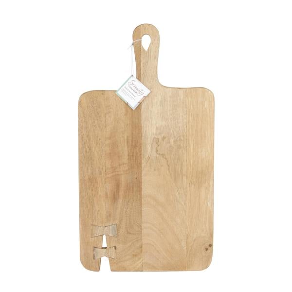 Inspired by the Japanese philosophy of wabi-sabi, a concept that celebrates imperfection, KitchenCraft's Serenity chopping board / serving platter brings a touch of tranquillity to the kitchen and the dinner table. This board features a pair of small carved bows, which bind together a small notch in the wood - a characterful imperfection that sets it apart from other pieces. It's made of mango wood, which gives it plenty of strength and makes it suitable for cutting and preparing your ingredients. The wood's natural grain pattern, meanwhile, makes it a stunning choice for presenting spreads of appetisers, sides and snacks when you've got guests over. With a sturdy handle and a built-in hanging loop, it's easy to carry this paddle board from kitchen to table, and just as easy to display when you've finished.