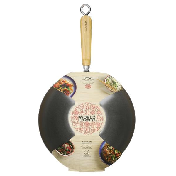 A large wok: a classic kitchen essential for creating incredible Asian cuisine. Do you have a life-long love for Asian cuisine or are starting to experiment with different recipes? This non stick wok is a real kitchen must-have. It's made of carbon steel, so you can get the wok super-hot, creating authentic, smoky flavours that are packed with plenty of crunch. The induction wok has a flat bottom, which helps those high temperatures to distribute quickly and evenly (use it on any hob), while the high sides mean you can mix your ingredients like a pro without worrying they’ll escape over the side.