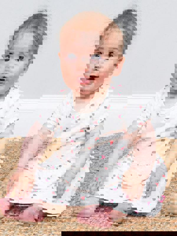 Practically perfect in every way! Kite's juicy Berry Dot design brings together style and practicality in one garment. A bodysuit vest and dress combined, this pretty little bodydress creates a stylish and practical little outfit.