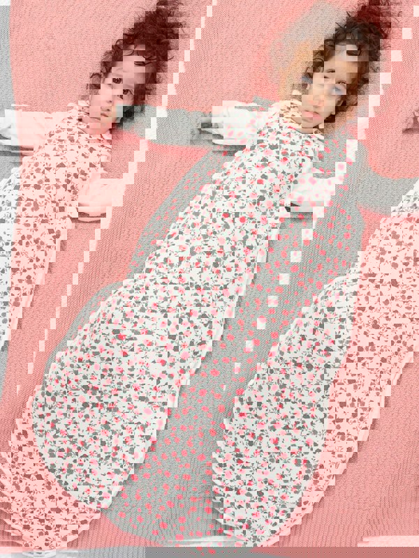 Sleep tight little one! Featuring this season's gorgeous Rosey Posey print, Kite's organic cotton jersey 2. 5 tog sleep bag is made with maximum attention to detail. Including a 2-way zip opening, shoulder poppers and side poppers (0-6 months only), Kite think their sleep bags are a dreamy little bedtime companion. Complete the look with their coordinating Rosey Posey collection.