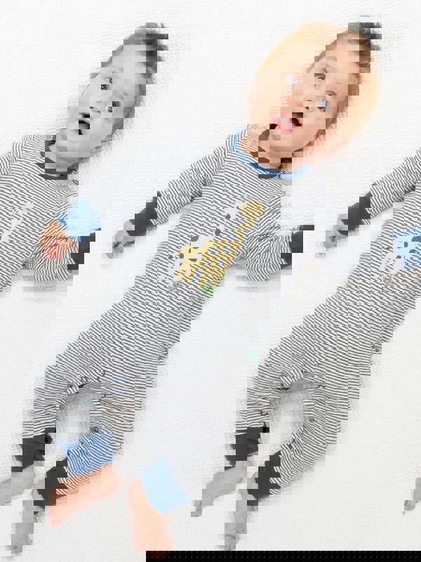 Kite's stripy organic cotton romper, with a gorgeous Sweet Giraffe appliqué, makes the comfiest quality outfit for your little one. Designed for sleep time and playtime, it's an irresistible option for cuteness overload!