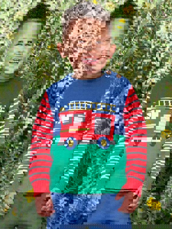 This lovely layer is the perfect pick, featuring Kite's fun fire engine design and contrast stripy sleeves to brighten any day.