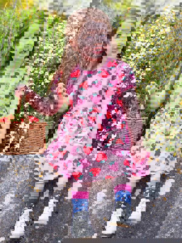This Berry Brave jersey dress is perfect for the season. Wear with socks or leggings, depending on the weather, for a comfy and practical outfit.