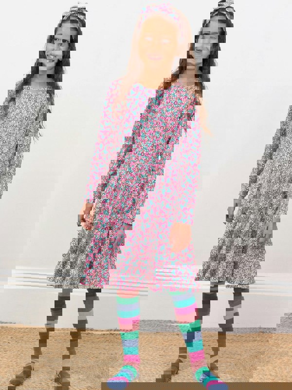 Kite's whirling, twirling skater dress with handy scoop pockets, created in Kite's Ditsy Tales print, ticks all the boxes. Made in organic cotton jersey with a little bit of stretch for great drape and next-to-skin softness. You can find this Kite print across Kite's range for lots of mix and match options.
