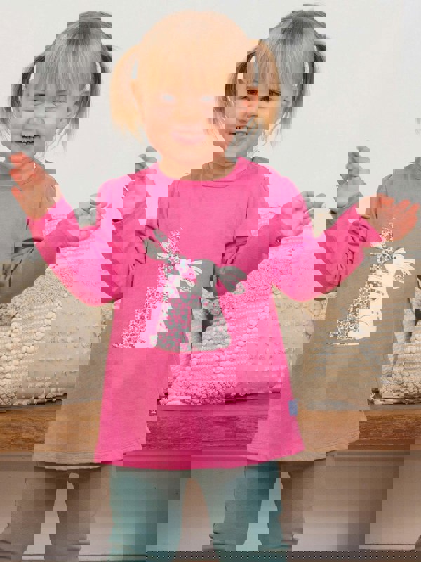 This easy-to-wear top features sweet ditsy hares who are sharing an adorable hug! Pair this cute appliqué tunic with the matching sweet ditsy jogger flares for a truly huggable outfit. Made from 100% organic cotton with popper fastenings up to and including size 3 y for easy changing.