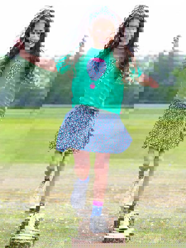 A fantastic invention, this short is disguised as a skirt and is perfect for active adventurers and cart-wheeling queens! Featuring Kite's Little Blossom print, which coordinates with this seasons t-shirts, it's an absolute must have.
