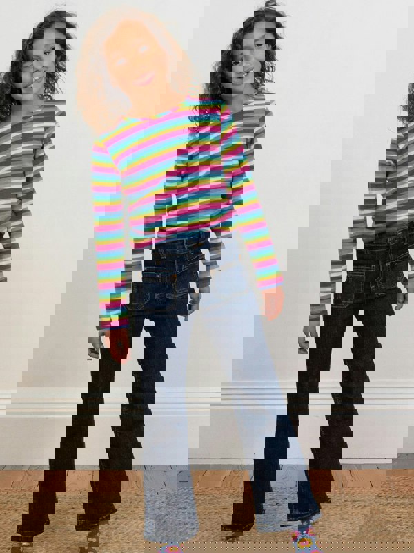 Whether on a woodland walk or at a party or play date, these flares are ready for everything. Made from super comfy stretch denim with a flared leg, adjustable elasticated waist, front pockets and a functional fly, they're truly versatile. To make the denim extra soft and sustainable, it has been washed with natural enzymes that come from apples. Pair them with any of Kite's bright and fun t-shirts for a comfy, colourful, and stylish look.