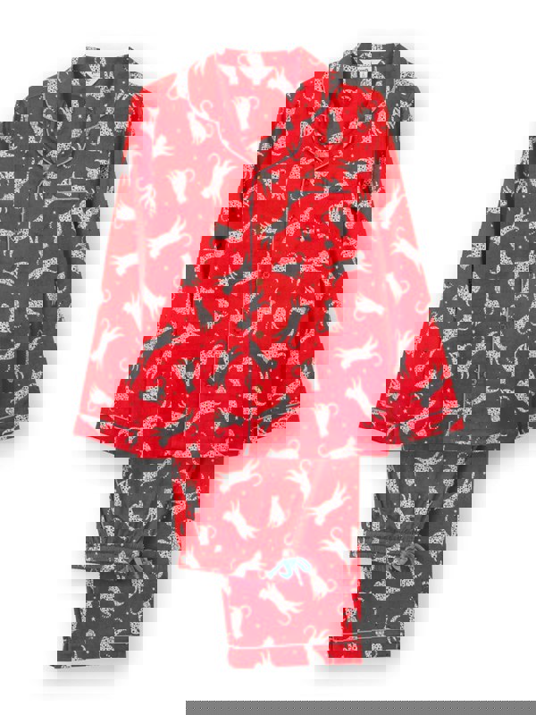 Discover these beautiful woven pyjamas featuring a very special snow leopard print. You'll love the button-through shirt-style top, complete with a revere collar and front pocket, which perfectly coordinates with the relaxed fit, straight leg bottoms. Designed for ultimate comfort, they feature a soft elasticated waist, adjustable ties and handy pockets, making them your new favourite choice for lounging or sleeping in style.