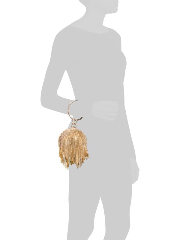 Womens Sparkling Rhinestones Tassel Ball Clutch Bag