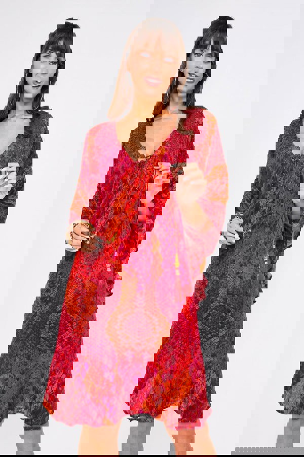 The Kaa Luxury Tassel Kaftan in Red and burnt orange has 3/4 Sleeves , smotherings of Swarovski Crystal and tonal tassels.