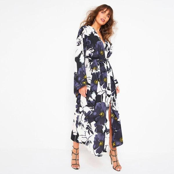 Made from soft silky luxe fabric that feels totally soft and luxurious against the skin. This Luxury Japanese sleeve styled Maxi Kimono robe features print synonomous with Kitten in a bold, dramatic floral print. Totally perfect for adding some drama to a weekend, luxurious holidays, candlelit romantic evenings, swimsuit cover-up or a daring funky maxi for a night out with a stylish difference.