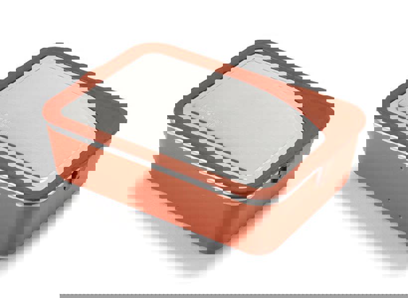 With snap-in dividers and space to securely nest the Klean Kanteen Lunch, Snack and Half Snack Food Boxes, the Rise Big Meal Box holds up to 1626ml of hearty helpings. Their largest food box offering, this low-profile container is made of durable, certified 90% post-consumer 18/8 stainless steel. The leakproof, food-grade silicone lid delivers an airtight seal with backup snap-and-lock tabs for added peace of mind. The Big Meal Box is also microwave, oven and dishwasher safe.