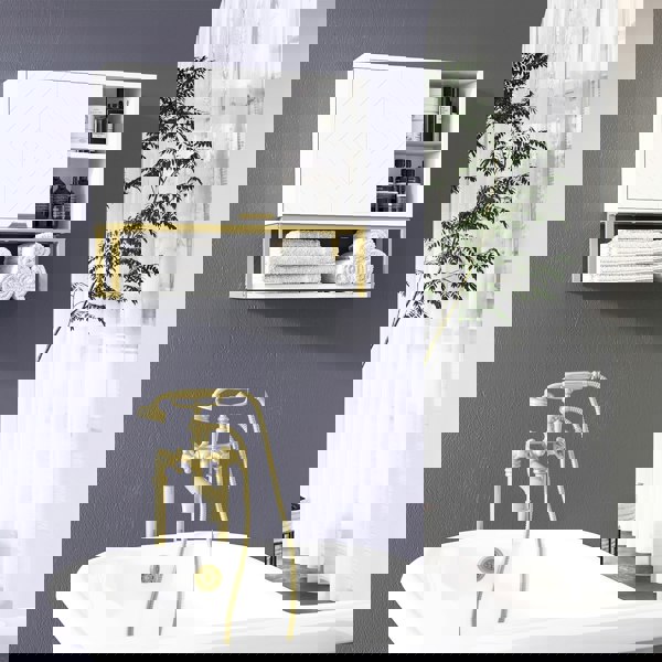Store bathroom essentials in style: do it with this kleankin bathroom cabinet. Comes with a main cabinet with adjustable shelf, two side shelves and a bottom shelf, providing room for the whole household. Wall mounted design is space-saving, makes it easy to access too. Clean white structure, with embossed doors for gentle character