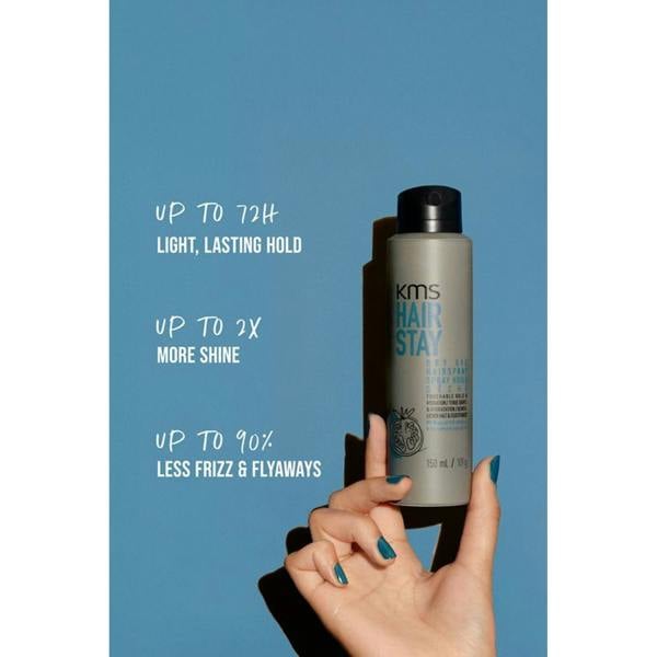 KMS HairStay Dry Oil Hairspray provides a flexible, light hold for up to 72 hours.