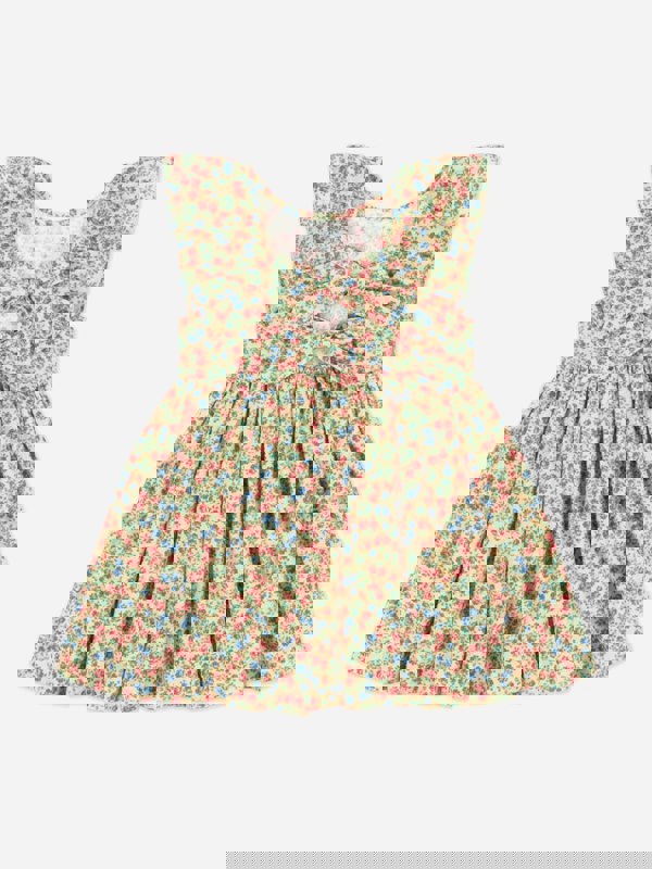 This Konges Sløjd girls dress comes in a bright yellow base colour with a floral print in shades of blue, red and green. A classic cut keeps the look clean and simple, while ruffle details at the shoulders add a decorative finish.