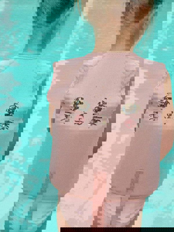 Bring a playful touch to swim time with the Girls Kitty Swim Vest from Konges Sløjd. Finished in powder pink, this swim vest is printed with a cat theme for a charming look in and around the water. A soft, comfortable fit keeps it easy to wear, while the lightweight feel supports fuss-free movement during swimming sessions.