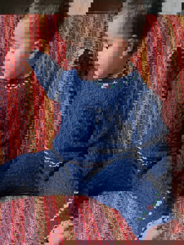 Girls Rosier Pants in navy from Konges Slojd, part of the AW2025 collection. This pair comes in a deep blue tone and is presented as a seasonal wardrobe piece.