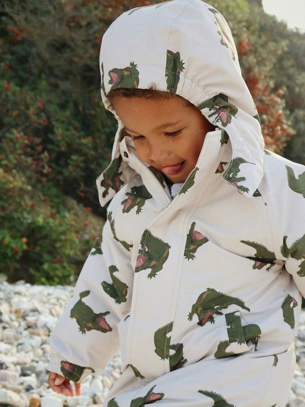 Konges Sløjd Kids Crocodile Nohr snowsuit in ivory for AW2024. Fully insulated for warmth and made to shield against snow and rain for dry outdoor wear. Finished in an ivory colourway and suitable for boys and girls.