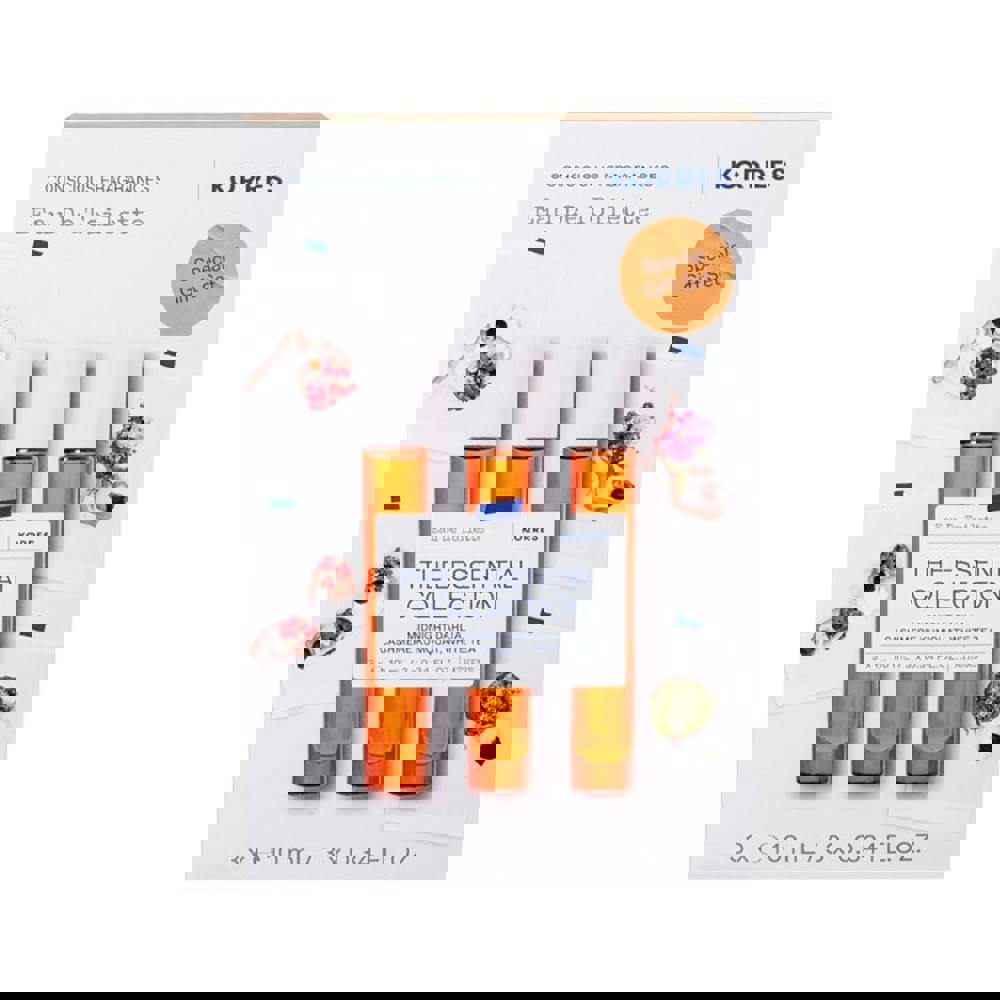 The set contains: Korres Midnight Dahlia Eau De Toilette 10ml, Cashmere Kumquat Eau De Toilette 10ml and White Tea Eau De Toilette 10ml.
