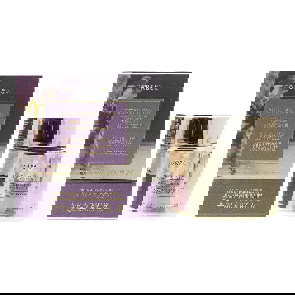 Korres Golden Krocus Hydra-Filler Plumping Cream is a skincare cream formulated with plant-based collagen. It is presented as a hydra-filler plumping cream within the Golden Krocus range.