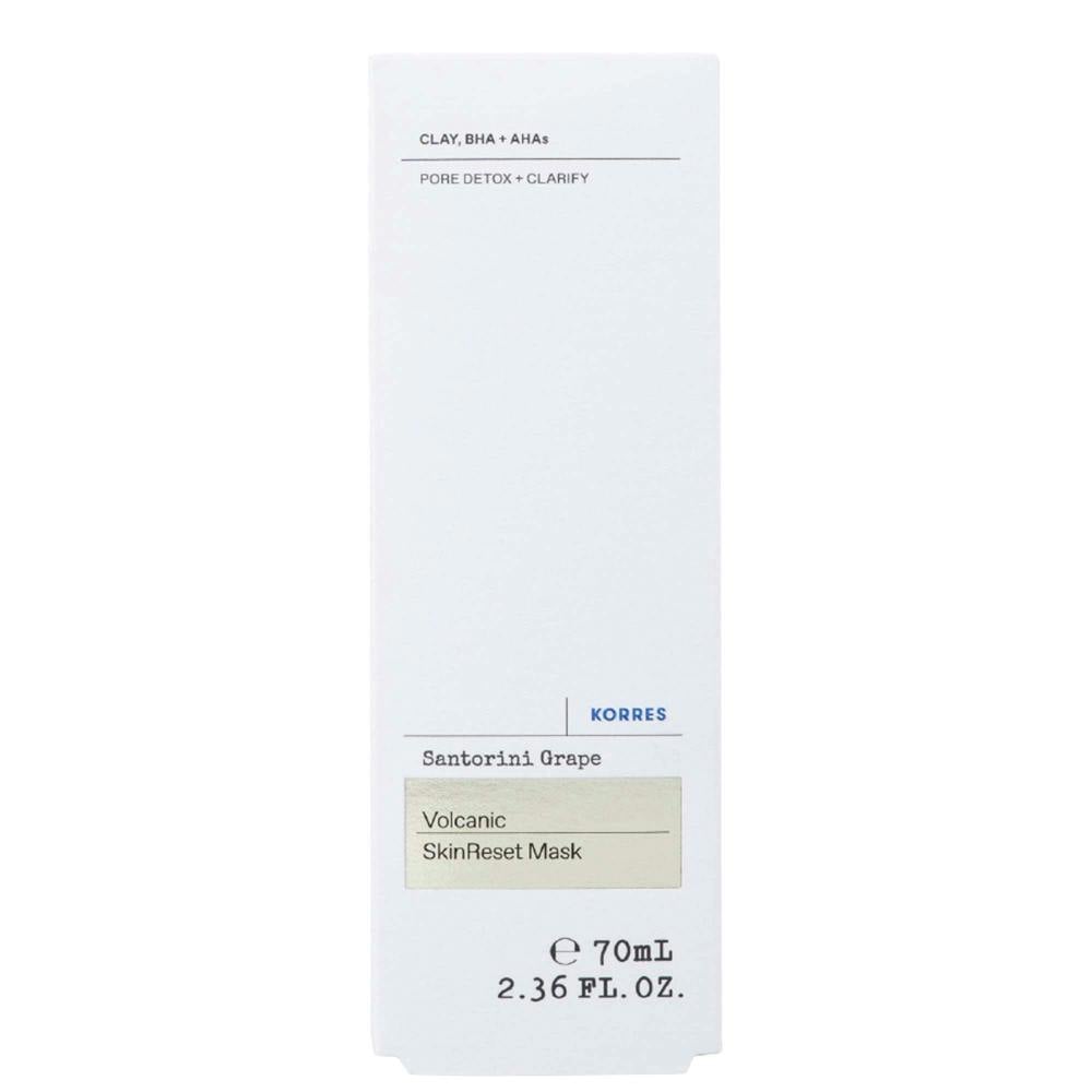 Powered by volcanic sand and activated charcoal, KORRES Santorini Grape Volcanic SkinReset Face Mask is a lightweight clarifying mask that spreads easily across the skin. Encapsulated activated charcoal targets enlarged pores and helps remove excess oil, while a blend of Santorini grape extract, white and green clay, plus AHAs and BHAs supports a deep-clean feel.
