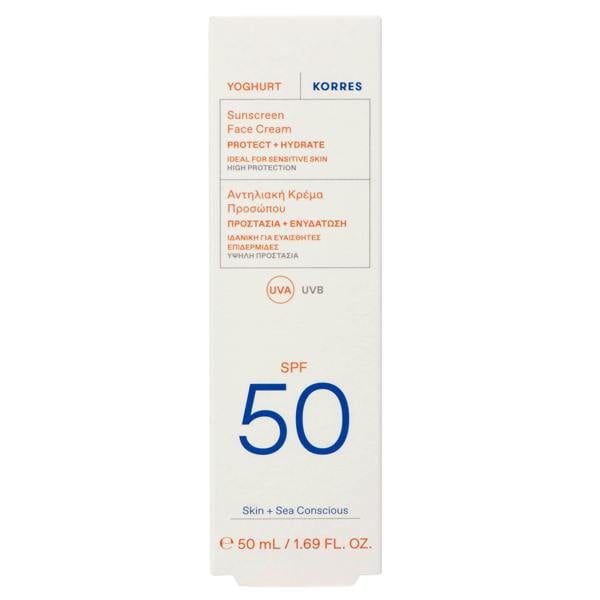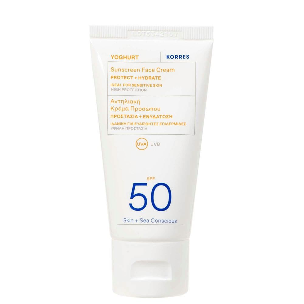 Created by KORRES, Yoghurt Sunscreen Face Cream SPF50 is a lightweight face sunscreen that combines high protection with a fast-absorbing feel and an invisible finish. The formula helps protect against photoageing while providing long-lasting active hydration, elasticity and a comfortable skin feel. Water resistance makes it a practical choice for days spent outdoors.