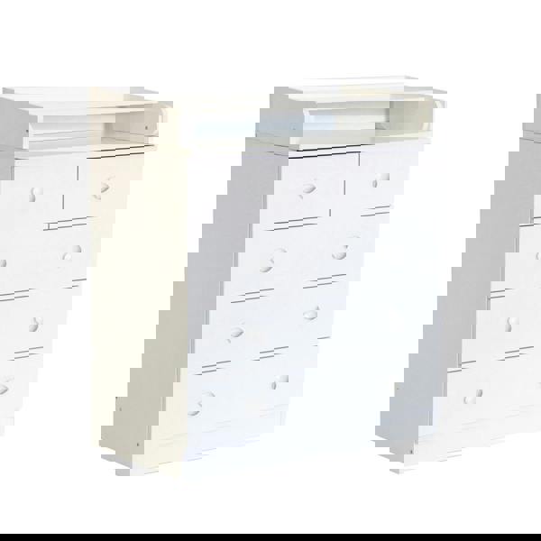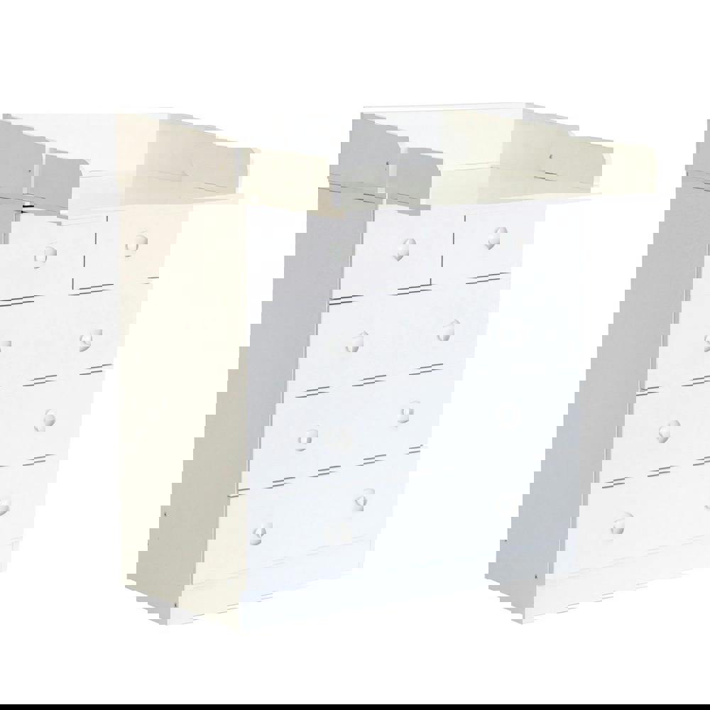 The Kidsaw Kudl Kids 1780 in white impresses with its excellent quality and elegant and appealing design. The model Simple 1780 is a variation of the chest of drawers 1580 and differs by the number of drawers. The elegant changing table makes daily baby care easier. The drawers contain all the space you need to wind up - leaving your hands free for your child. The five large drawers offer plenty of storage space. Thanks to the guide rails, the drawers are easy to put on and take off. With the discreet design and its classic appearance, the dresser fits in almost every room and every style of living. The foldable changing mat saves space and if your child no longer needs to be wrapped, then the changing table can also be used as a chest of drawers - A changing table, which grows.