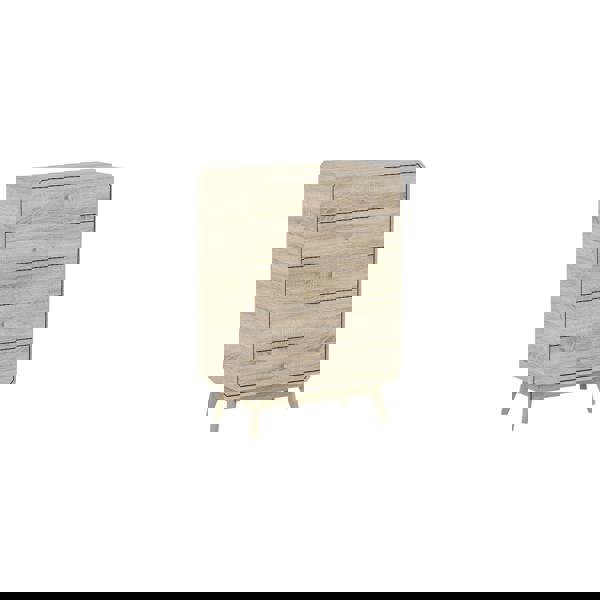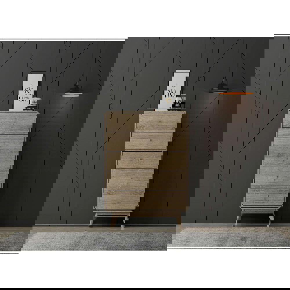 Attention to detail meets classic design with the BR15 Range. Each piece finished in great detail, adding a touch of sophistication to your living space. Finished in a Hana Oak colour, this piece emits an aura of everlasting grandeur. Built for longevity, every item in this collection is equipped with sturdy box-framed legs, offering stability for years to come. The BR15 Chest Of Drawers would compliment any modern or traditional setting. Its curved edges enhance aesthetics and contribute to safety. Additionally, the inclusion of coloured handles provide a high-end touch, without the premium cost.