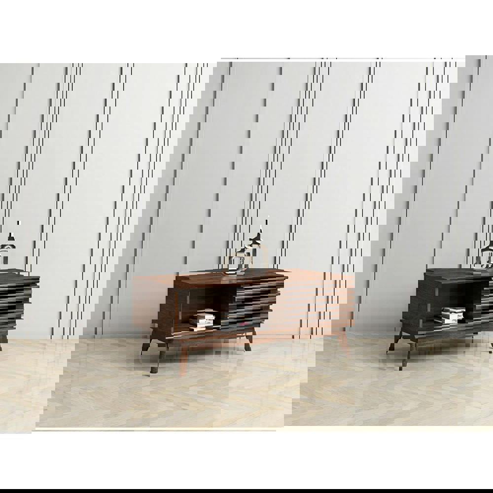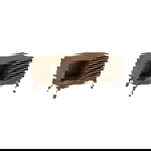 The LV41 Range is one of charm. This exquisite set is meticulously crafted, providing a seamless update to your home décor. It's minimalist yet vintage all in one. The darker Columbian Walnut colour combines sophistication and grandeur. The LV41 Coffee Table seamlessly merges an organic aesthetic with the functionality of a sliding slatted door, creating a harmonious blend of style and utility.
