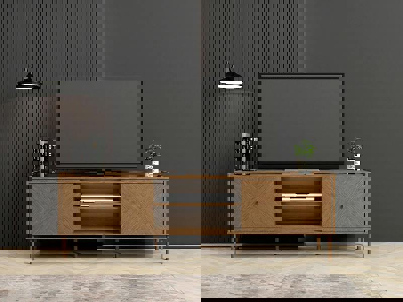 Attention to detail meets classic design with the LV80 Range. Each piece features an intricate detail, adding a touch of sophistication to your living space. Finished in a summer light oak colour, this piece emits an aura of everlasting grandeur. Built for longevity, every item in this collection is equipped with sturdy legs, offering stability for years to come. The LV80 TV Unit would compliment any modern or traditional setting and sits perfectly below a wall mounted TV or as a base for a stand supported TV. Additionally, The two minimalist, handle-less doors offer a stylish aesthetic and ample space.
