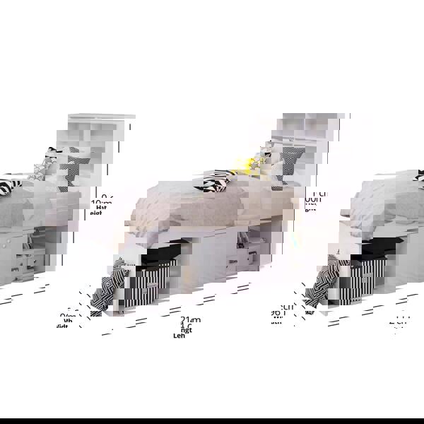 The low cabin bed with a bookcase is the perfect "middle ground" answer to your storage needs. A single bed frame with plenty of storage. The bed frame features 3 different compartments, which includes 2 open areas and a middle cupboard to hide all the messy bits. The bookcase headboard expands this bed frames storage even further with an additional 4 cubby holes to store more nik naks. . . comes flat packed for easy home assembly.