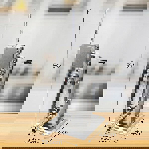 The sausage stuffer's dimensions of 55cm in height, 39. 5cm in width, and 44cm in depth provide space-saving convenience. Offering ample room for sausage preparation without taking up excessive countertop space. Its 39. 5cm width ensures stability during operation while accommodating the various funnel sizes effortlessly. With a depth of 44cm, this appliance can be neatly tucked away when not in use, making it a practical addition to any kitchen.