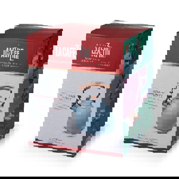This traditional, elegant whistling kettle features a durable steel core with a rust-resistant enamel coating. The beechwood handle is heat-resistant and ergonomically designed. It’s suitable for all stovetops, including induction, and the loud whistle prevents excessive boiling and reduces safety hazards.