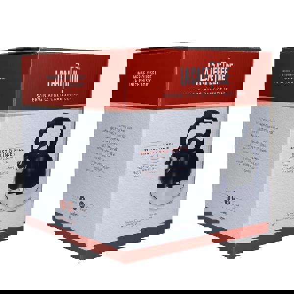 Embrace tea and coffee-making tradition, even if your kitchen's fitted with the height of modern tech. This retro-inspired stovetop whistling kettle works on all hobs - gas, electric or induction. It's ideal for range cookers like AGA™️ stoves too. Wherever you use it, it's bound to catch some admiring looks. Its curvaceous shape and gloss black finish will boost the charm factor of any kitchen, whether it's cool and contemporary or cosy and traditional. Of course, it has a built-in whistle too, so you'll hear that charming "peep" when your water's boiled. When you're ready to pour, simply flip the whistle up and enjoy another piping-hot cup of the good stuff. Like all La Cafetière products, this induction hob kettle is built to last. It features a robust steel core, finished with a tough vitreous enamel coating. For extra comfort, it features a stay-cool plastic knob and handle. Need a present for a tea or coffee lover? This enamel stovetop kettle comes in a handsome La Cafetière box, so it's great for gifting. Three colours are available: black, red and cream. This listing is for a black whistling tea kettle with a handy removable lid. Capacity: 2. 4 litres (4. 2 pints). AGA™️ is a registered trademark of Aga Rangemaster Group Limited. Covered by a 10-year guarantee.