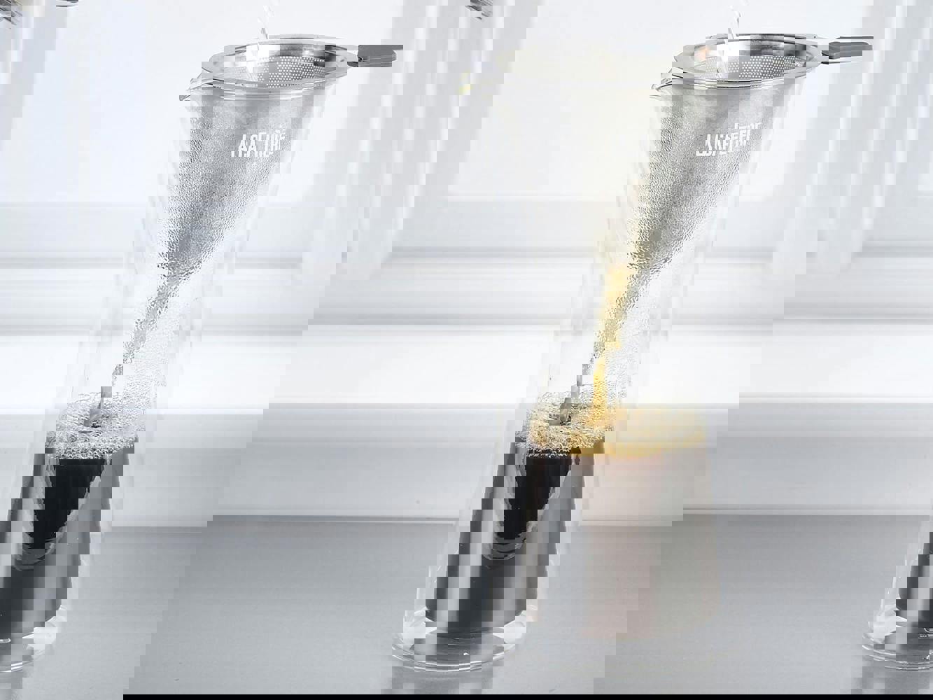 Ideal for coffee enthusiasts, this expert coffee set will provide delicious and flavourful drip filter coffee with ease. Simply add coffee grounds to the filter, place over the glass carafe and pour over boiling water. The water will drip down in a slow process that will make every sip of coffee rich with complex flavours. A double walled glass design means the carafe will be a comfortable temperature to the touch with a spout for easy serving. The fine mesh stainless steel filter ensures no filter paper is needed for this process. Ideal for use with the La Cafetière gooseneck pouring kettle for precise brewing with the pour-over method.