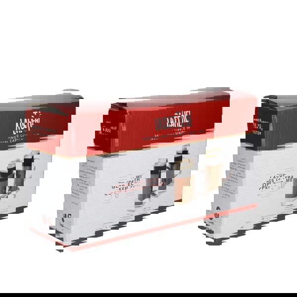 Great coffee isn't just about the perfect grind or the best beans… it has to look the part too. So treat your eyes, as well as your taste buds, with these copper-effect stainless steel coffee cups from La Cafetière. The warm, glowing copper finish isn't just trendy – it's timelessly glamorous too. And if that wasn't enough, these copper cups have been updated with a fresh handle design. There's never been a better time to start your own luxurious coffee-making collection! Or why not treat a friend instead? They come securely packed in an attractive La Cafetière gift box, so are easy to wrap and ready to delight. Each cup features a borosilicate glass mug set into a tankard-style stainless steel frame. Borosilicate glass boasts an impressive thermal shock resistance, while the stainless steel is robust, rust resistant and easy to clean. This means you can expect to enjoy great-tasting, great-looking coffee for many mornings to come. Capacity: 300 ml (0. 5 pint, 10 fl oz). Covered by La Cafetière's 12-month guarantee.