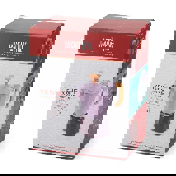 Discover the joy of making traditional espresso with our 3-cup Espresso pot in stunning purple colour. Made from high-quality aluminium, this espresso maker heats up quickly and is compatible with gas, electric, and ceramic hobs, making it versatile for any kitchen setup. Classic Italian moka pot design embraces the essence of Italian coffee culture with our beautifully designed espresso pot.